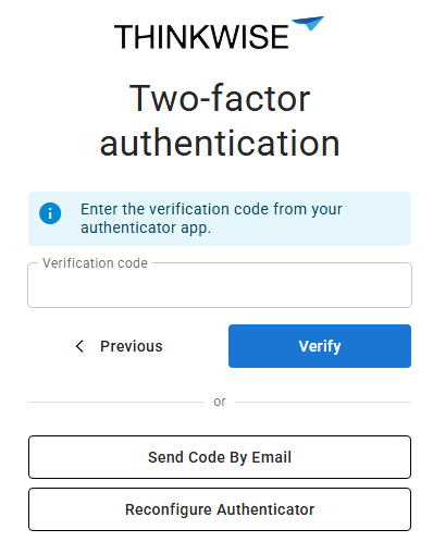 Every time the user wants to log in, they need to enter the time-based code generated by the TOTP authenticator app. To allow a fallback to email-based two-factor authentication, for example if the user does not have access to their smartphone, select the checkbox Allow fallback to email. On the log in page, the user can then select the option Send code by email for a one-time code to be sent to their email address.