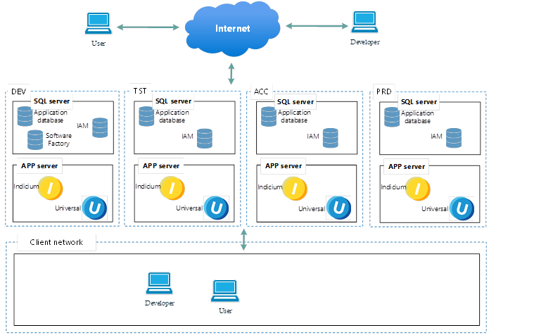 In a structured software development and deployment process, the DTAP model (Development, Test, Acceptance, Production) provides a reliable and secure pathway to move applications from initial design to live use. The Thinkwise platform follows this approach closely, using the Thinkwise IAM DEV and Indicium application tier.