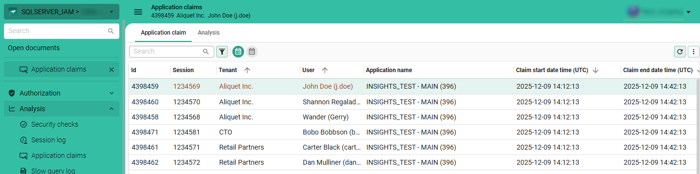 main administratorYou can view which users were active at a specific time in an application in IAM. Application claims gives a more accurate view of user activity than the Session log, since users may leave sessions open without being active.
