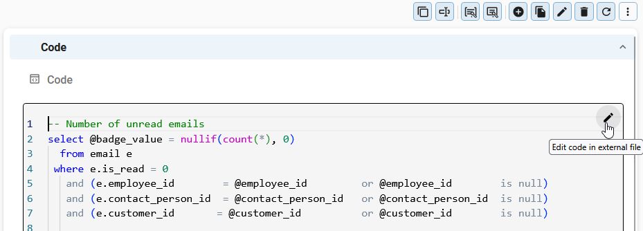 - Select Edit code in external file